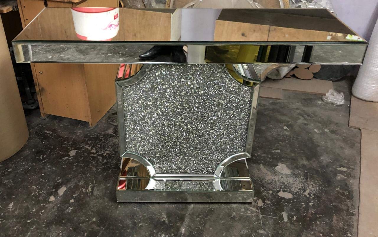 - This is a Modern Diamond Surface Designer Console Table, each small piece mirror with handmade nice bevel to add perfect finishing touch to any room, very shiny and display in living or bedroom to maximize light and add glamorous touches of chic.